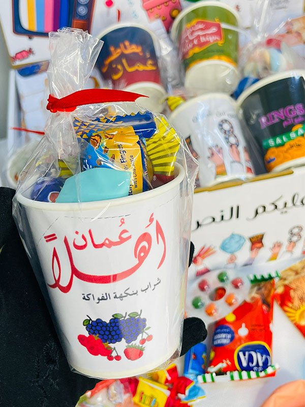 - محتوى الكوب:4حلويات مختلفة+بالون