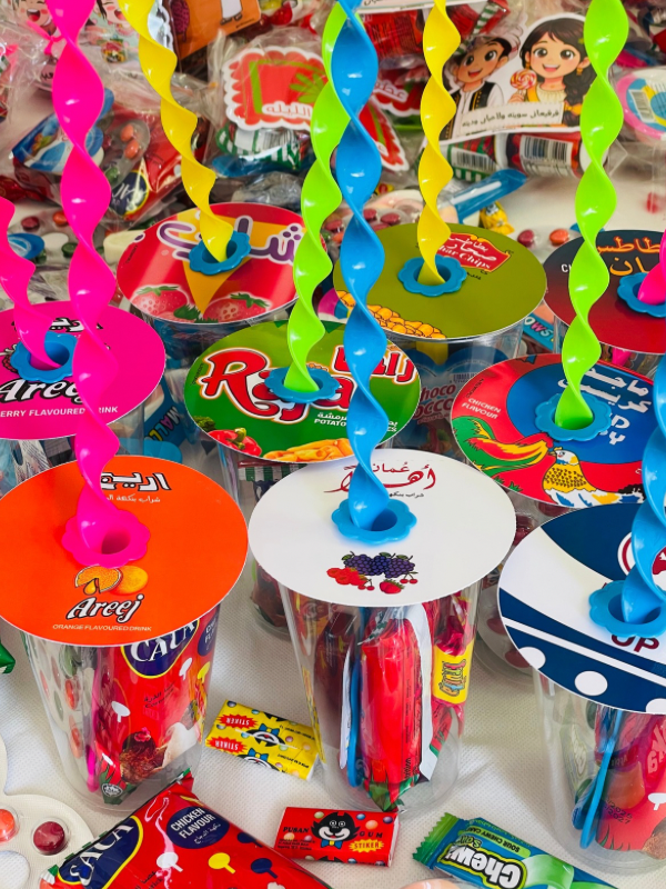 - 3حلويات مختلفة+لعبة الطبق الطائر لكل كوب💕